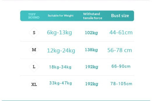 Aquí tienes las tabla de medidas para ajustarlo a tu perro.